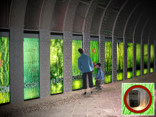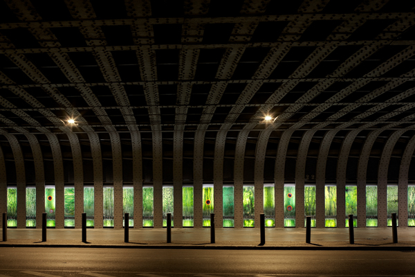 Die historischen Brückenarchitektur wird nun durch eine Installation hervorgehoben. Sie bildet einen attraktiven Blickfang am Eingang zur Karl-Marx-Straße. Zwischen den grauen Eisenpfeilern der Brücke beleuchten 75 Leuchtstofflampen grüne Glasplatten, auf denen die Rindenstruktur von Neuköllner Straßenbäumen nachgebildet sind. Ergänzt werden sie von Städtenamen wie Ems oder Zaandam, die sich auf den Straßenschildern des Bezirks wiederfinden. In die Brückendecke und im Boden eingelassene Strahler beleuchten zusätzlich die Szenerie. Bullaugen in den Glasscheiben geben den Blick frei auf das Innere der alten Brückenkonstruktion. Die neue Lichtinstallation wurde am 20. Juni 2008 eingeweiht.